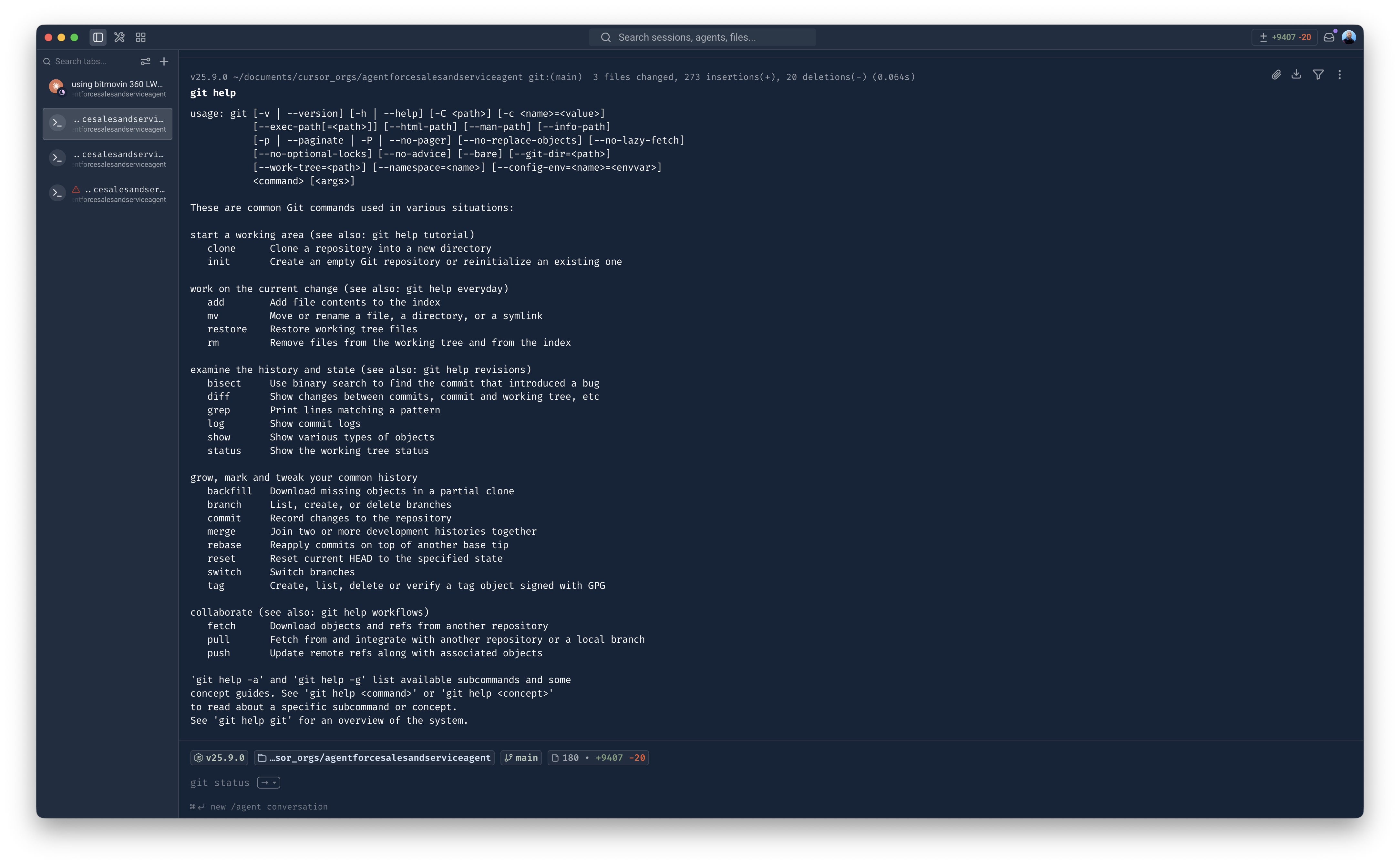 Every command on this page can be run by Cursor's Agent. A good starting prompt: